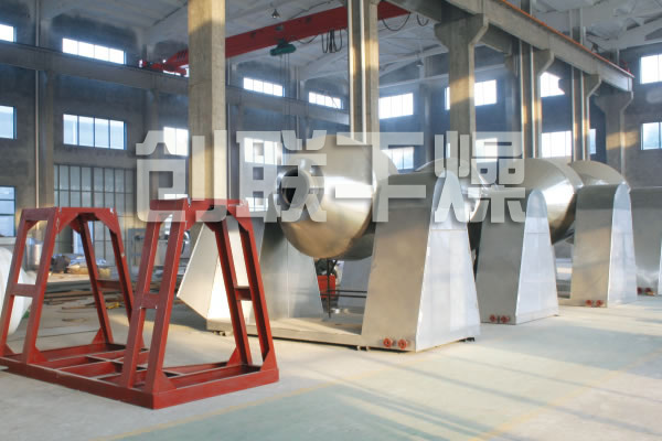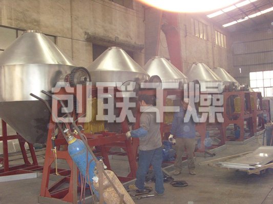 ◎在動力驅動下,罐體作緩慢旋轉,罐內物料不斷地混合,從而達到強化干燥的目的。