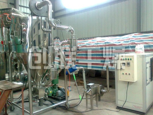 中藥浸膏高速離心噴霧裝置是離心式噴霧干燥技術在特定物料干燥中的應用,也是利用高速離心式霧化器使物料分散成霧狀,與熱空氣充分接觸,完成瞬間干燥,形成粉狀成品的干燥裝置。