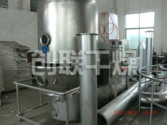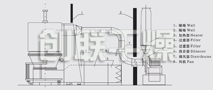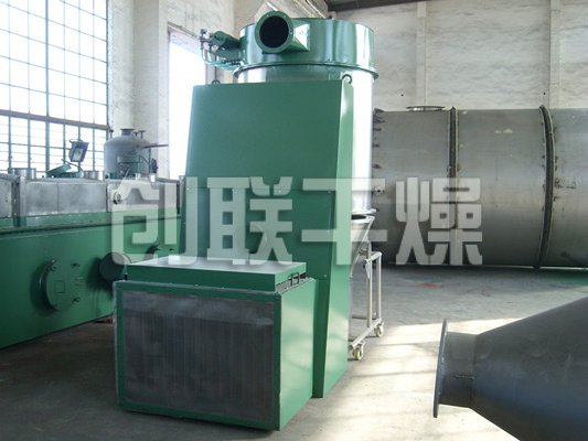 空氣經加熱凈化后,由引風機從下部導入,穿過料斗的孔網板。在工作室內,經攪拌和負壓作用形成流態化,水份快速蒸發后隨著排氣帶走,物料快速干燥。