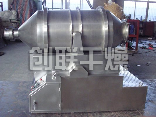 EYH二維混料機的轉(zhuǎn)筒可同時進行二個運動,一個為轉(zhuǎn)筒的轉(zhuǎn)動,另一個為轉(zhuǎn)筒隨擺動架的擺動。被混合物料在轉(zhuǎn)筒內(nèi)隨轉(zhuǎn)筒轉(zhuǎn)動、翻轉(zhuǎn)、混合的同時,又隨轉(zhuǎn)筒的擺動而發(fā)生左右來回的摻混運動,在這兩個運動的共同作用下,物料在短時間內(nèi)得到充分的混合。EYH二維混料機適合所有粉、粒狀物料的混合。