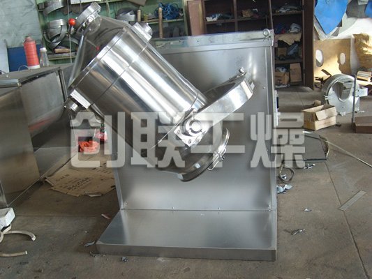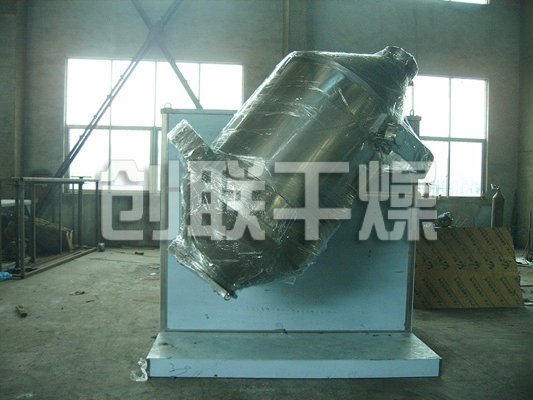 裝料的筒體在主動(dòng)軸的帶動(dòng)下,作周而復(fù)始的平移、轉(zhuǎn)動(dòng)和翻滾等復(fù)合運(yùn)動(dòng),促使物料沿著筒體作三向復(fù)臺(tái)運(yùn)動(dòng),從而實(shí)現(xiàn)多種物料的互相流動(dòng)、擴(kuò)散、積聚、摻雜.以達(dá)到均勻混合的目的。