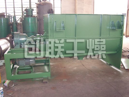 該機型由容器、螺旋攪拌葉片和傳動部件組成:螺旋葉片一般做成雙層或三層,外層螺旋將物料從兩側向中央匯集,內層螺旋將物料從中央兩側輸送,形成對流混合。